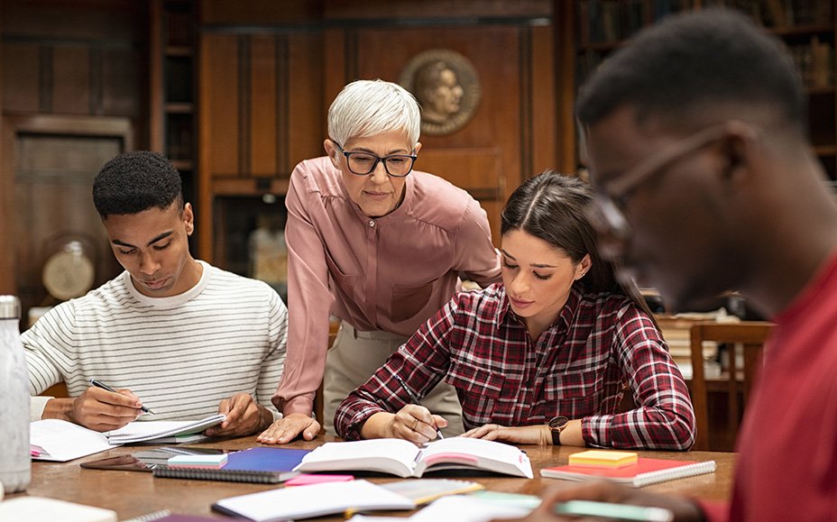 indian students keeping distance and do home work outdoors